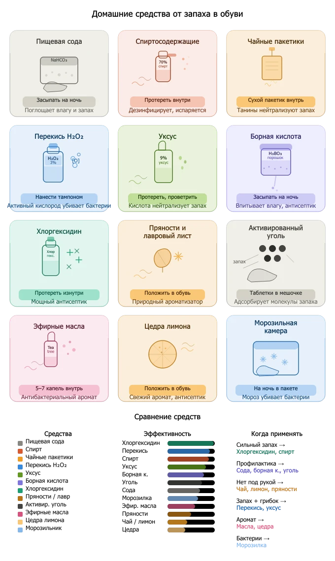Неприятный запах обуви - довольно частое явление. Причина может быть разной: долгая носка, неправильное хранение или дефект новой обуви прямо из магазина. Проблема неприятная, но решаемая - существует немало способов справиться с ней дома, и каждый сможет выбрать тот, что подходит именно его случаю.